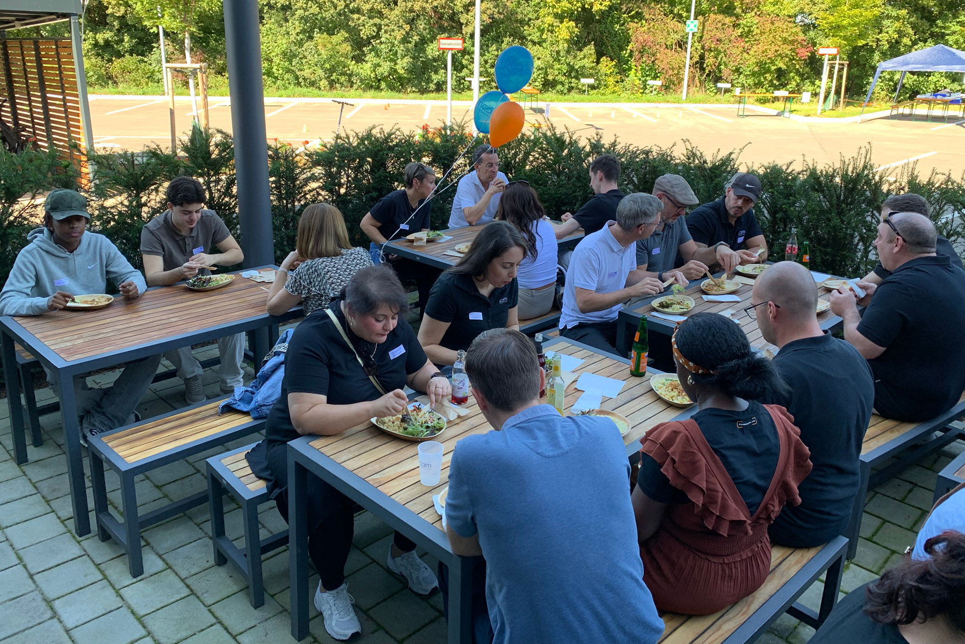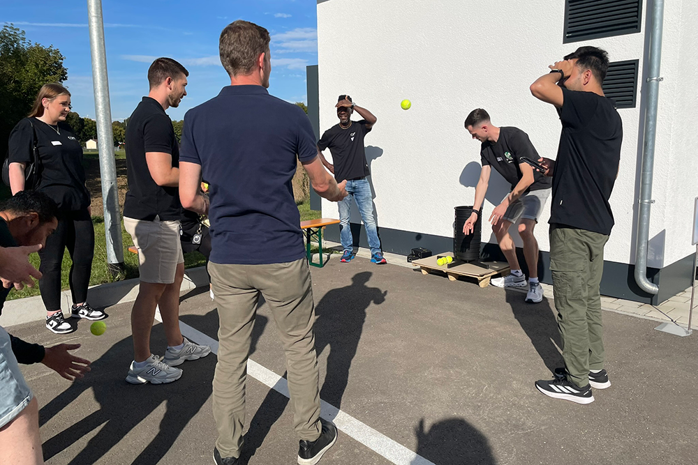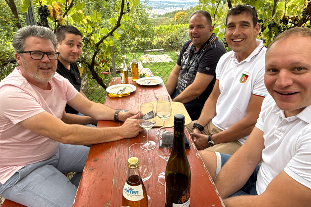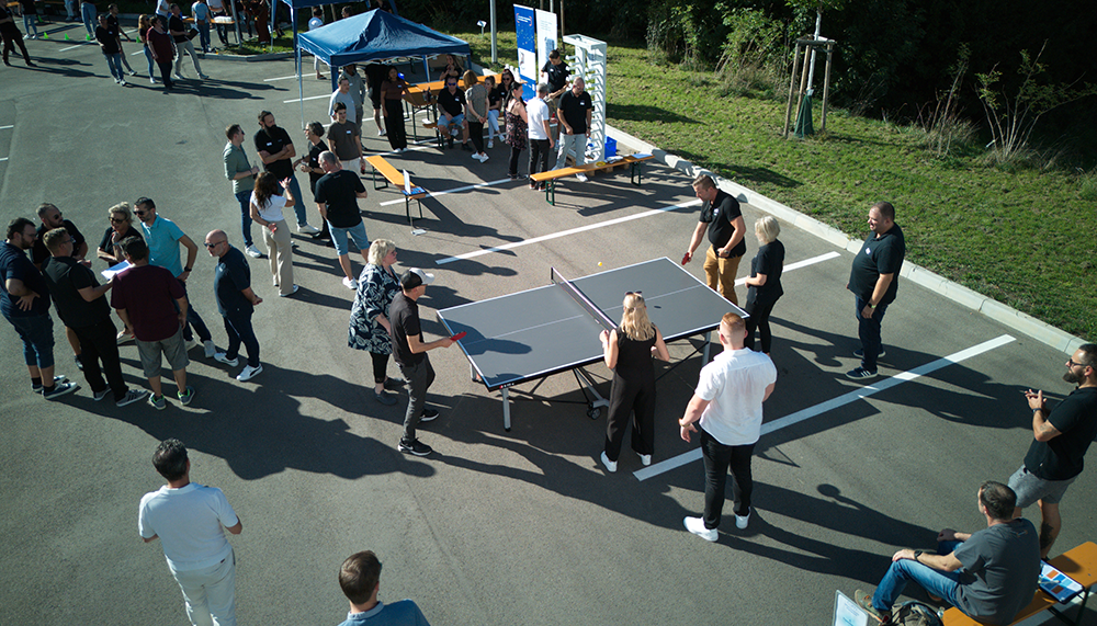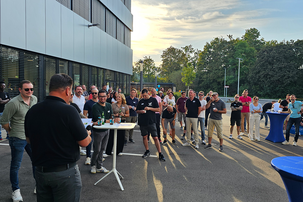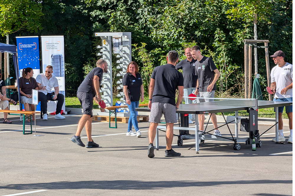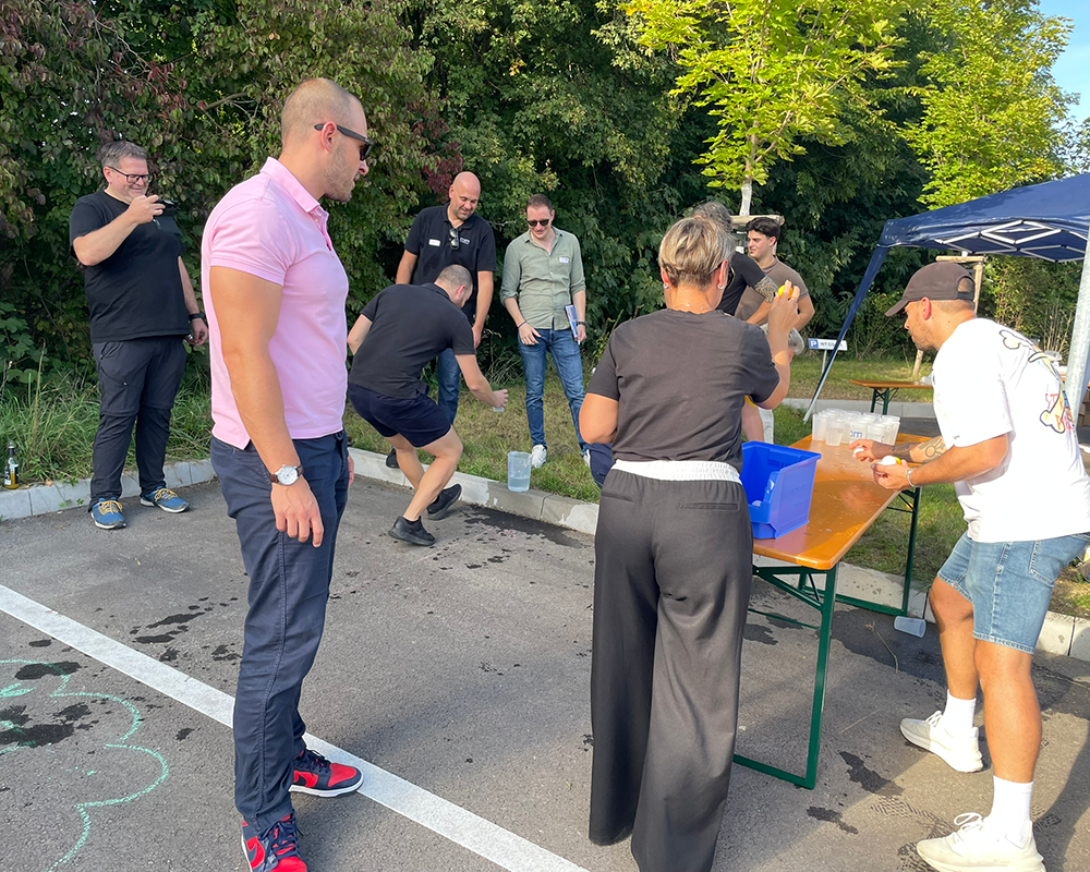 Bereits am Samstagvormittag herrschte große Wiedersehensfreude, als ein Bus voller Schweizer Kolleginnen und Kollegen am Standort Oberboihingen ankam. Bei strahlendem Sonnenschein startete ein abwechslungsreicher Tag: Nach schwäbischen Spezialitäten ging es auf Entdeckungstour durch unseren Neubau, bevor gemischte Teams bei der „Connect Com Olympiade“ mit viel Teamgeist, Kreativität und Spaß ihr Können unter Beweis stellten. Ob beim Muffen-Zielschießen, E-Scooter-Parcours oder kniffligen Quizfragen – es wurde ehrgeizig, lautstark und mit viel Lachen um Punkte gekämpft.