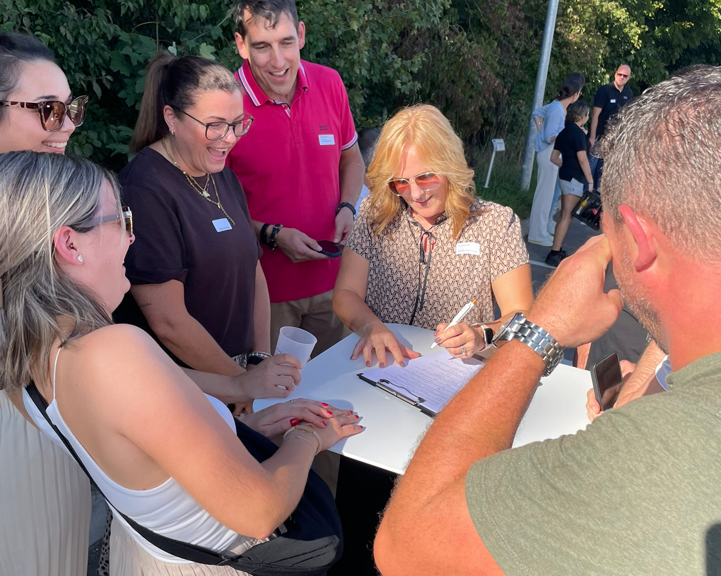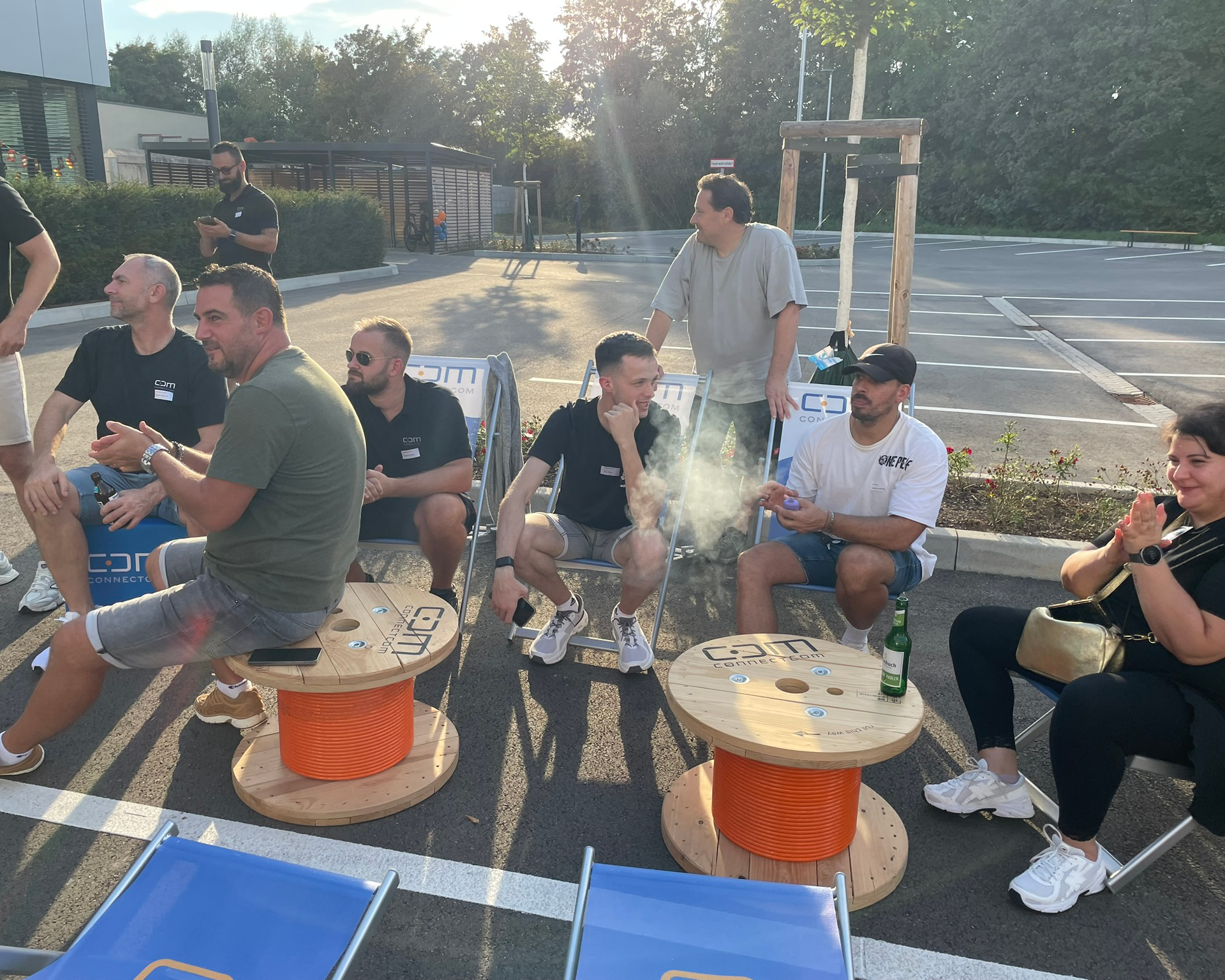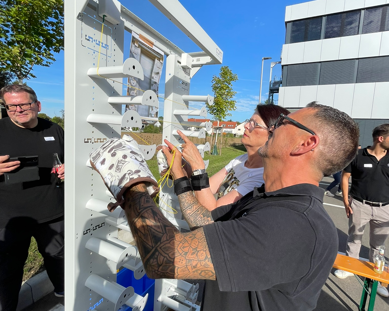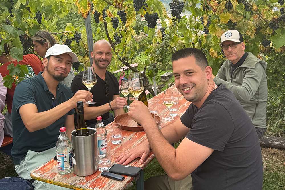 Bereits am Samstagvormittag herrschte große Wiedersehensfreude, als ein Bus voller Schweizer Kolleginnen und Kollegen am Standort Oberboihingen ankam. Bei strahlendem Sonnenschein startete ein abwechslungsreicher Tag: Nach schwäbischen Spezialitäten ging es auf Entdeckungstour durch unseren Neubau, bevor gemischte Teams bei der „Connect Com Olympiade“ mit viel Teamgeist, Kreativität und Spaß ihr Können unter Beweis stellten. Ob beim Muffen-Zielschießen, E-Scooter-Parcours oder kniffligen Quizfragen – es wurde ehrgeizig, lautstark und mit viel Lachen um Punkte gekämpft.