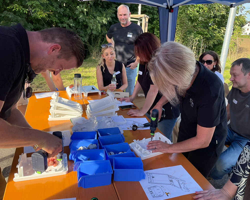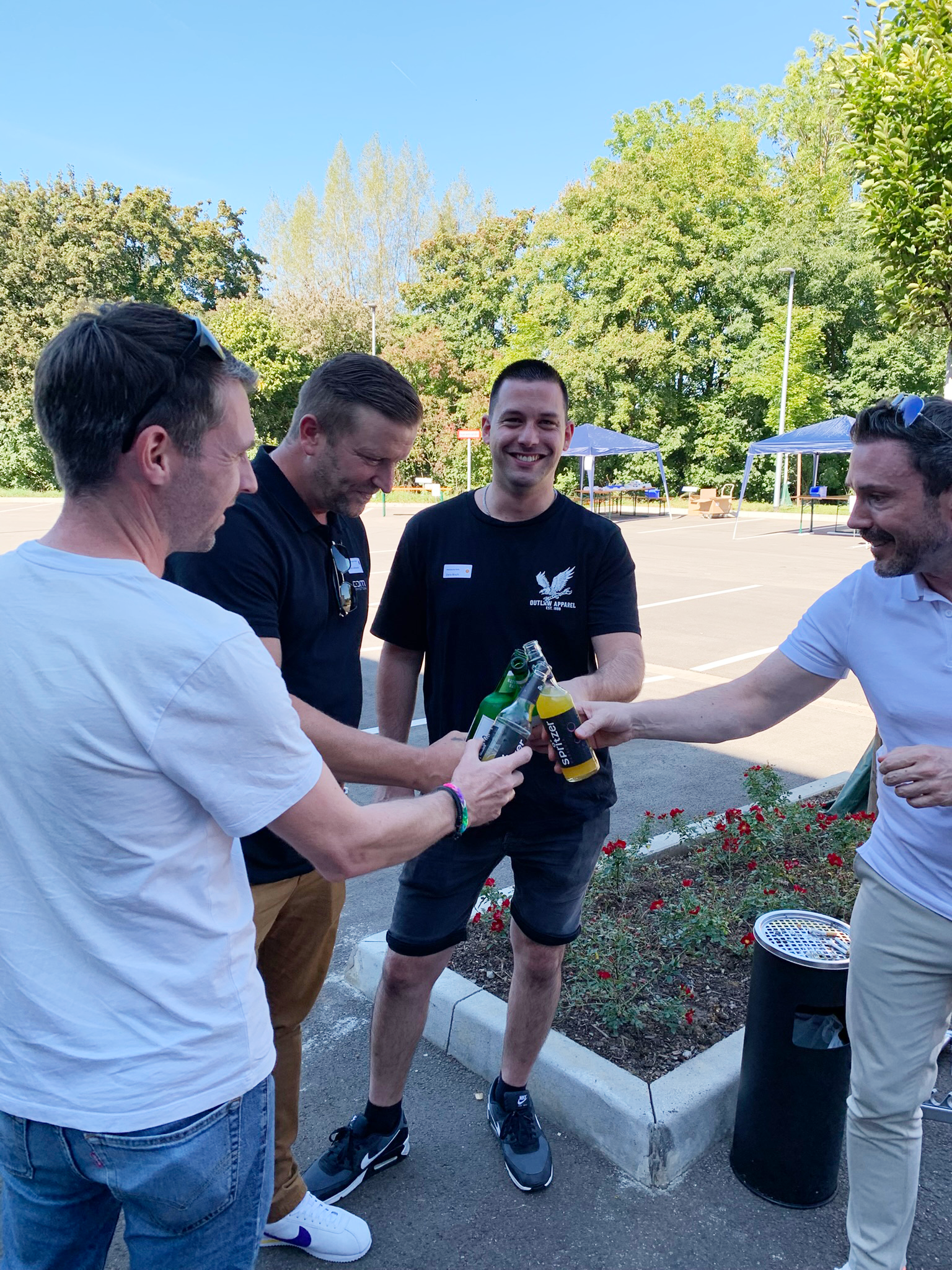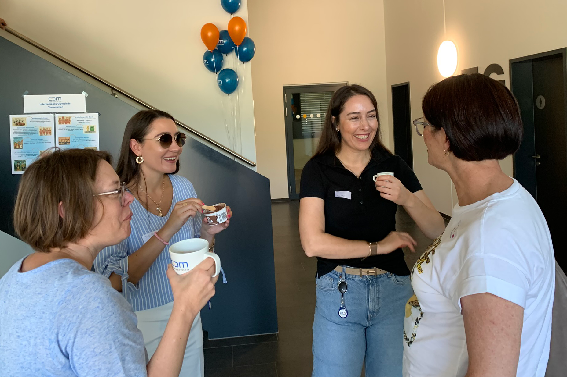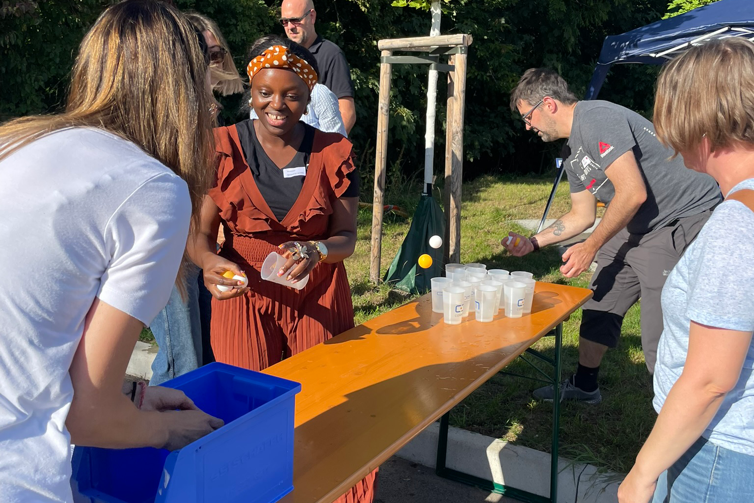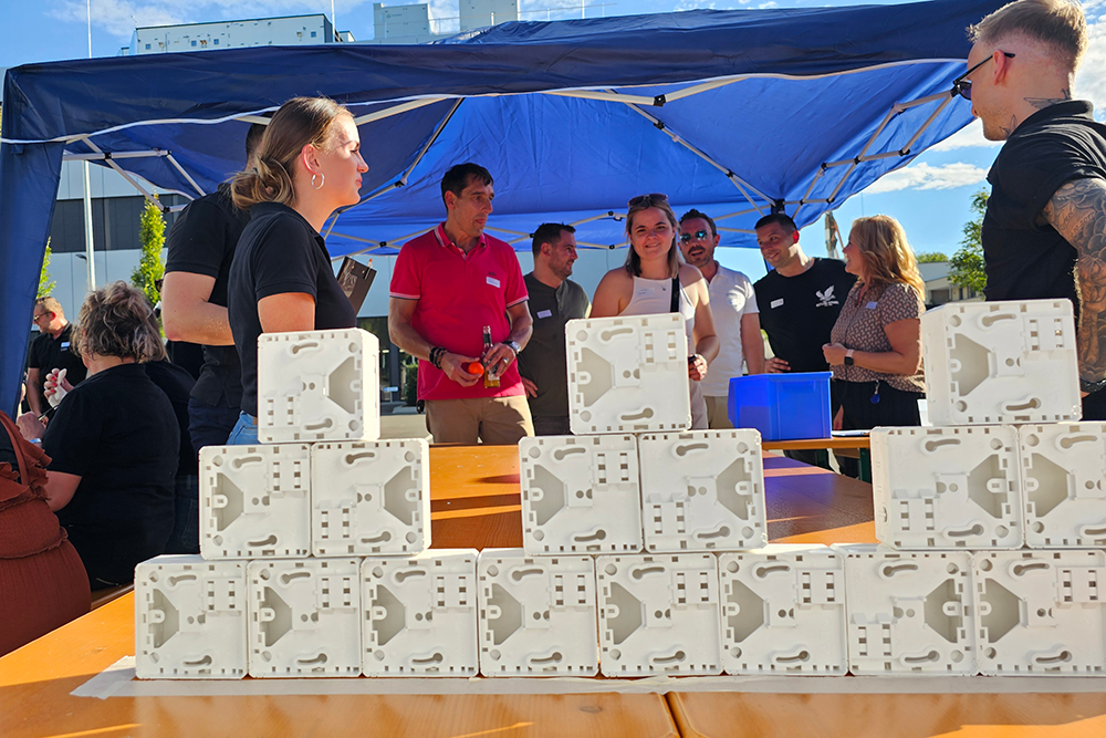 Bereits am Samstagvormittag herrschte große Wiedersehensfreude, als ein Bus voller Schweizer Kolleginnen und Kollegen am Standort Oberboihingen ankam. Bei strahlendem Sonnenschein startete ein abwechslungsreicher Tag: Nach schwäbischen Spezialitäten ging es auf Entdeckungstour durch unseren Neubau, bevor gemischte Teams bei der „Connect Com Olympiade“ mit viel Teamgeist, Kreativität und Spaß ihr Können unter Beweis stellten. Ob beim Muffen-Zielschießen, E-Scooter-Parcours oder kniffligen Quizfragen – es wurde ehrgeizig, lautstark und mit viel Lachen um Punkte gekämpft.